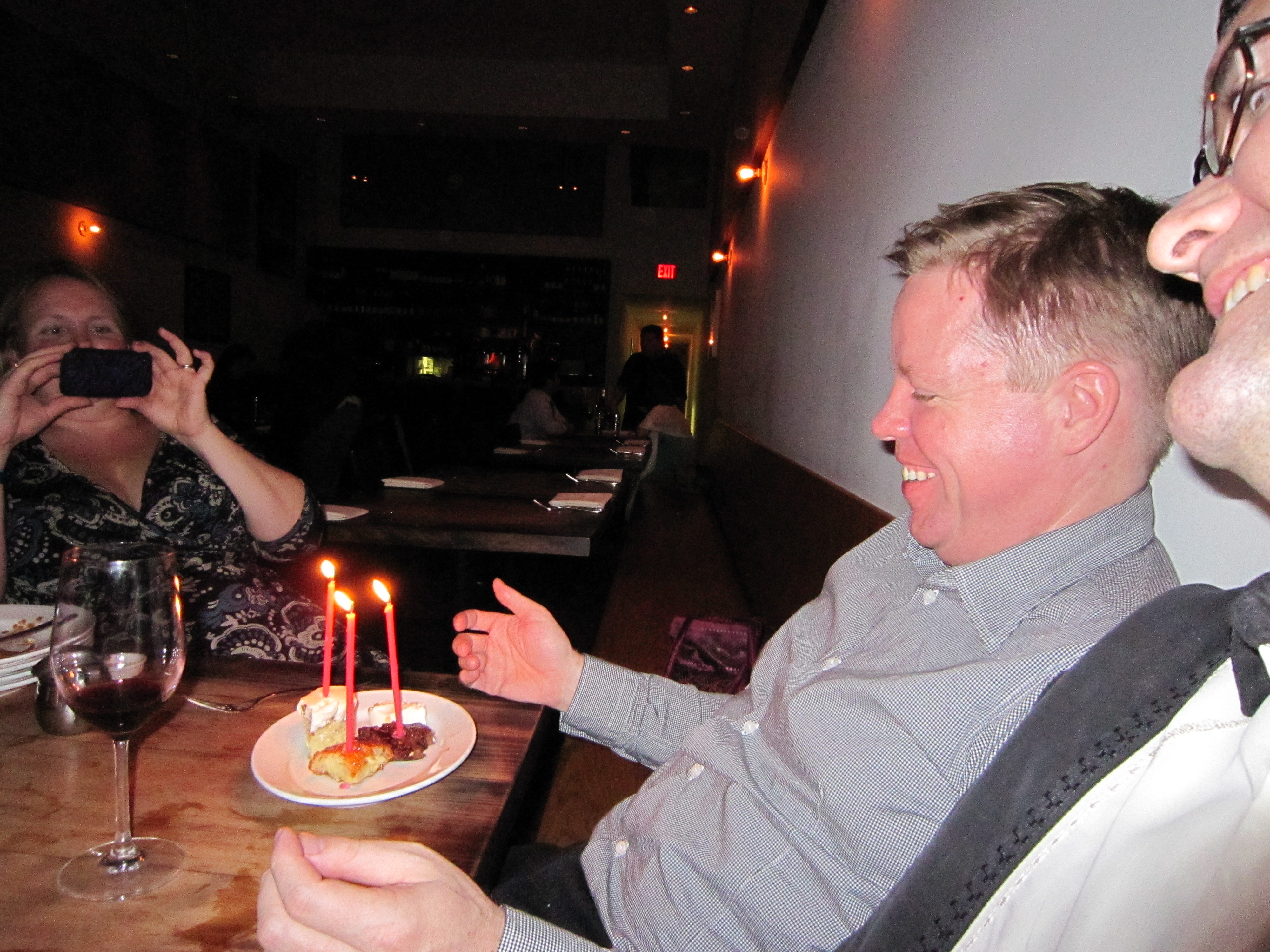 We loved everything with the exception of the green garlic broth with grilled toast, but there were a few dishes that you really must order. First and foremost, the barbeque pork belly sandwiches with slaw. We ordered this dish three times over the course of the evening and each time when it arrived at the table, I wasn’t able to get my camera out quickly enough to snap a photo before the food was devoured! Suffice it to say it was amazing – especially with the bottle of 2005 Anjou Chateau Perray Jouannet (a red blend dominated by Cabernet Franc). Another dish that went too fast for me to get a photo was the pig ear with chili, lime and fried egg. I like bacon – alot- however pig ear sounded more like something my dogs would enjoy. After tasting the saltiness of the pig’s ear countered by the tart acid of the lime juice , I won’t be sharing this with my dogs, ever. Wow – this was really good! Also, the rabbit loin with parsnip, pear mostarda and Benton’s bacon was fabulous (this dish and the barbeque pork belly sandwiches were my two absolute favorites of the evening). Skatewing isn’t something you see on menus in the United States much – this preparation with collards, rutabaga and grainy mustard was wonderful. We ordered two of these because the other side of the table kept hoarding the skate. Skatehoarding is not a crime! 😉 Sorry, I just had to say it. If you are into foie gras, Animal offers some really creative and very tasty versions. a) Foie gras, biscuit, maple sausage gravy and b) foie gras loco moco with quail egg, spam and hamburger. Both were out of this world! By the time we got to the end of the meal we were all too full for dessert…this fact wasn’t enough to stop us from ordering every dessert on the menu. The tres leches with dulche de leche was rich and sweet – my husband gave it two thumbs up. I was partial to the bacon chocolate crunch bar with s&p anglaise…bacon, chocolate and anglaise. Need I say more? Joe’s doughnuts with cinnamon sugar and caramel were also very good and so was the panna cotta with saba (which I learned is a sweet reduction of grape must). Ultimately, I cannot do the food at Animal justice with words and photos…you simply *must* go there. Better yet, go with a group so you can order the whole menu!