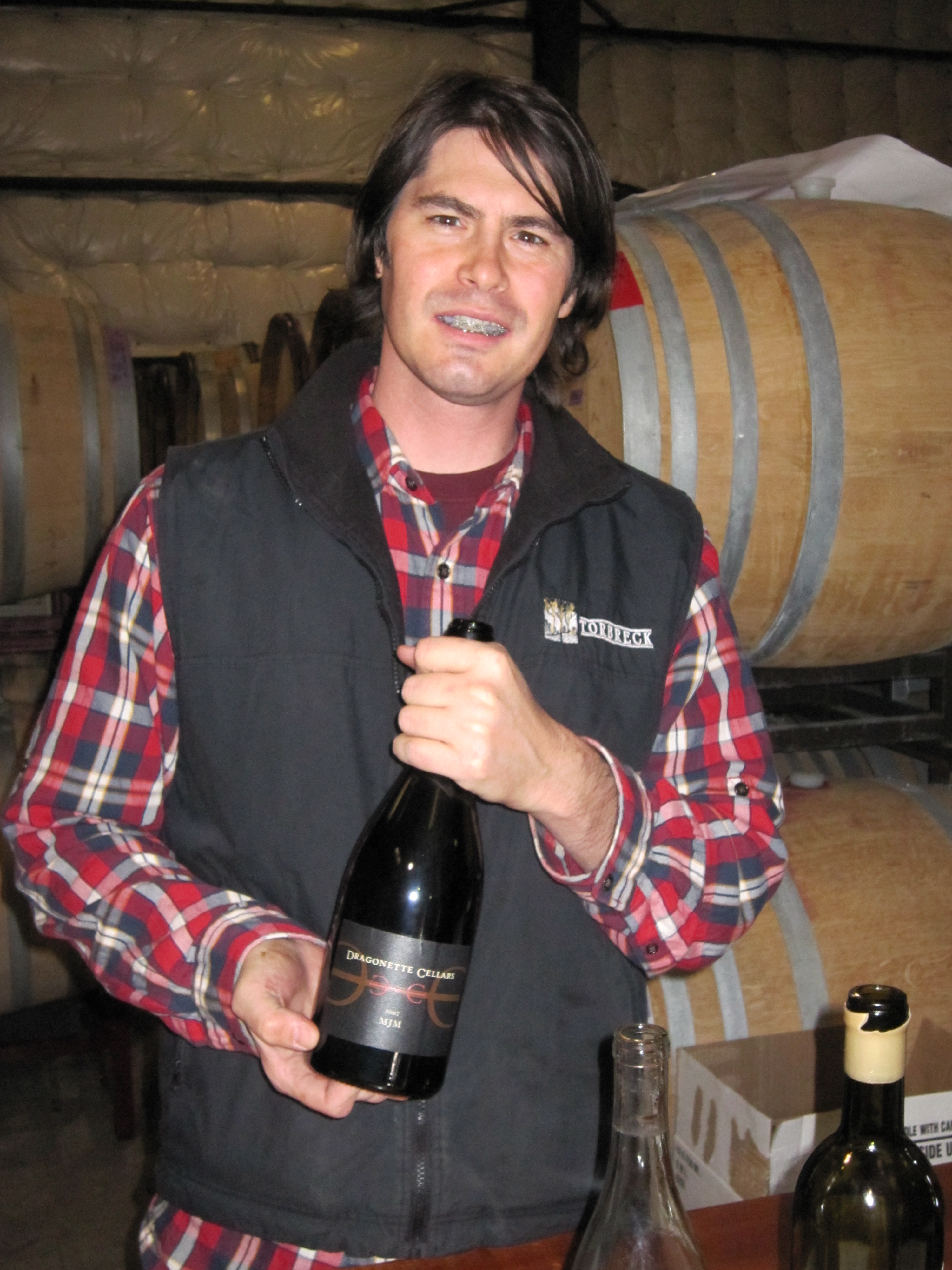 So much has happened and so many wonderful things are on the horizon! First and foremost, there is lots of great news from one of my local favorites, Dragonette Cellars. Very soon you won’t have to go out to the wine ghetto in Lompoc to visit Dragonette, because they are opening up a tasting room in Los Olivos, right across the street from Stolpman. Also, any day now, Dragonette will release a wine that consists mostly of the co-fermented Syrah/Viognier that I fell in love with while barrel tasting last year (there are a few photos from this below). The wine is a reserve release and is called MJM. John Dragonette, Steve Dragonette and Brandon Sparks-Gillis dedicated this wine to their wives (Mitchi, Jen and Michelle), hence the name MJM. Smart husbands. 🙂 Recently I visited Dragonette and tasted the 2007 MJM with winemaker Brandon Sparks-Gillis. He was quite proud (and rightly so) of the almost released blend of 96% Syrah, 3% Grenache and 1% Viognier. This is a gorgeous wine with layers of flavors – definitely one to save for a special occasion! It wasn’t officially for sale yet (the bottles had not yet been hand dipped in wax) however I was able to convince him to let me go home with a couple of bottles. Thanks Brandon! Last but not least, Dragonette now has a wine club – you can join online too!