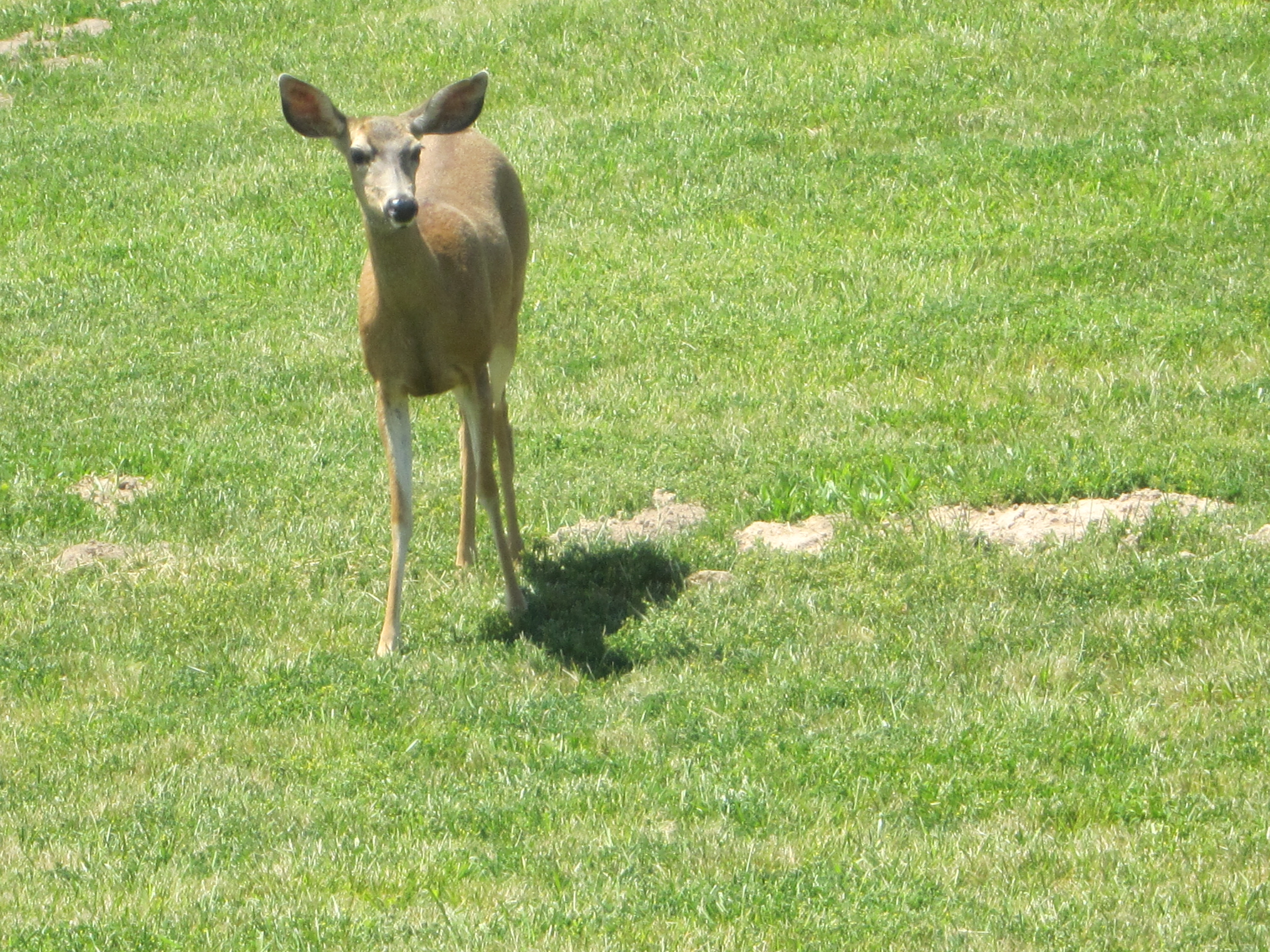 - encountered all sorts of wildlife out here in the country – deer (see photo below), red tailed hawks, turkey vultures, mice, moles, skunks (unfortunately one of my dogs got too close to the skunk, sigh) a myriad of songbirds, mice, horses and a tree frog (oddly enough the frog was in my shower…go figure)
